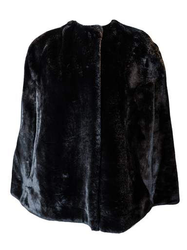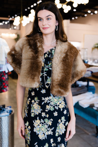 Model is 5'11" and wearing a size S Runs true to size Faux Fur Size Chart