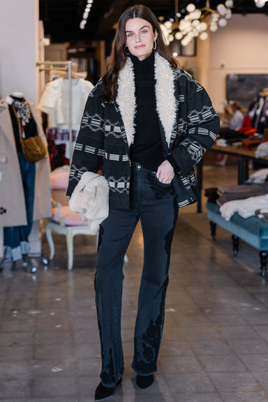Model is 5'11" and wearing a size S Runs true to size Faux fur Size Chart