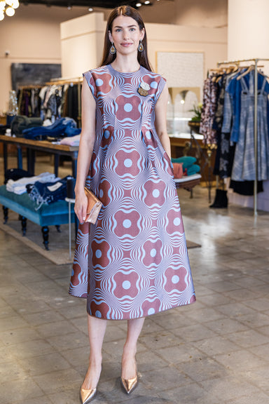 • Sleeveless swing dress• Crewneck line with back zipper closure• Knee length bubble skirt