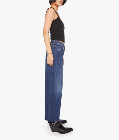 Hand-distressed raw hem Zip fly with hook-and-bar closure Mid-rise, wide-leg fit Soft like butter denim that holds its shape thanks to magical fab...