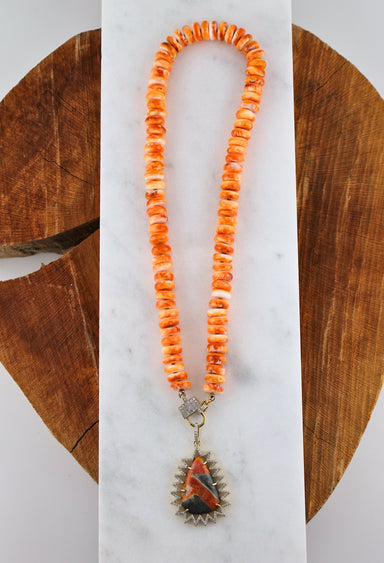 Pendant is made of fragmented antique Bulgarian porcelain plates and pave diamond details Measures approx. 1.45" long by 0.65" wide Necklace not ...