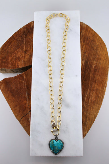Exclusive You Are Here x The Woods Fine Jewelry collab Gold plated brass pave diamond border and enamel turquoise heart C118 Heart measures 1.2" ...