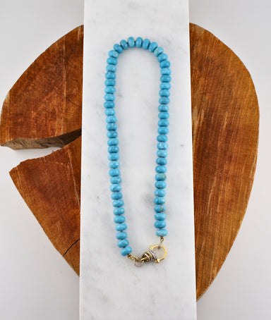 9 carats yellow gold - 375‰TurquoiseStabilized turquoiseDiamond Dimensions Length 39 cm adjustable to 38 cmPendant 1,7 x 1,5 cm Carefully chosen b...
