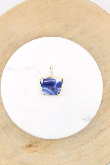 Leaf shaped pendant made of sodalite and pave diamond detailing Measures approx. 2.5" long by 1.5" wide Necklace not included