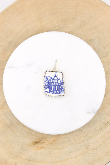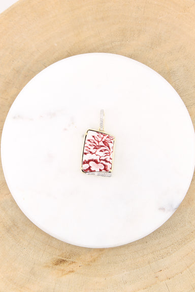 Pendant is made of fragmented antique Bulgarian porcelain plates and pave diamond details Measures approx. 1.5" long by 0.9" wide