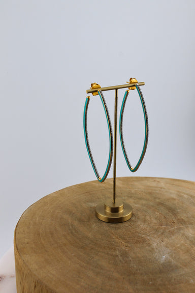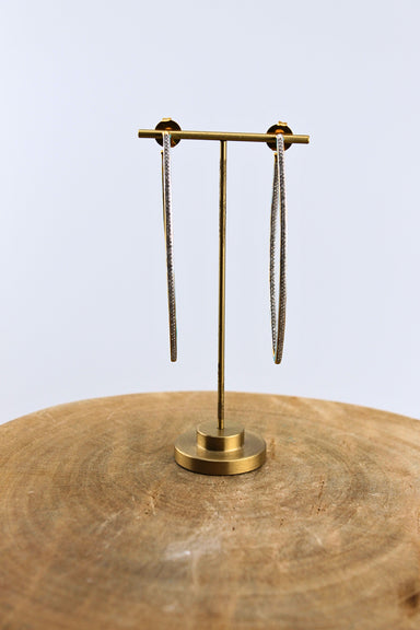 Geometric feather inspired earrings featuring pave diamond strip down center Measures approx. 2.5" long by 0.75" wide Post back earrings