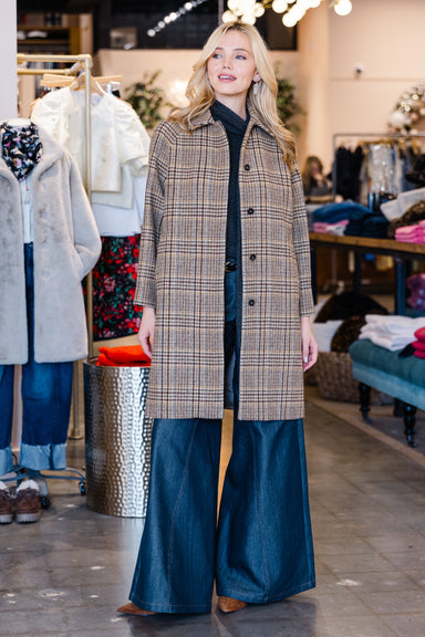 Model is 5'9" and wearing a size S/M Relaxed fit Size Chart