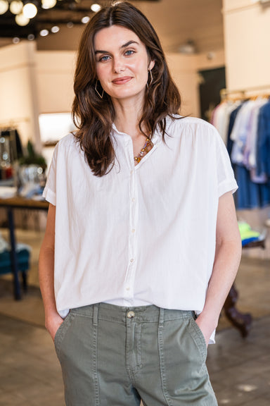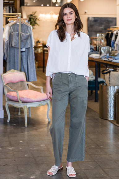 Front and back patch pockets Tapered cropped ankle High-rise fit Zip fly with hook-and-bar closure Model is 5'10" wearing a size 4 Turn this garme...