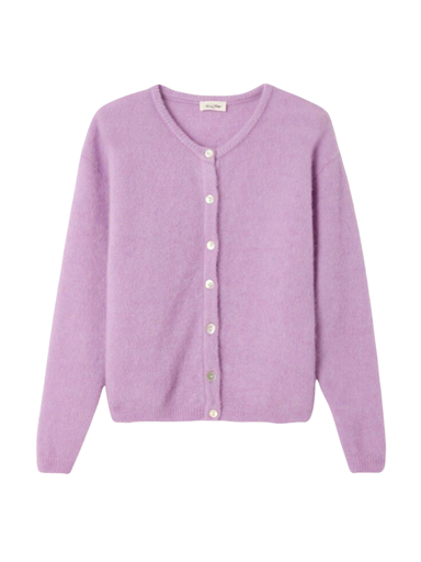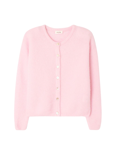 Long-sleeved cardigan Short, rounded cut Round neck Button fastening Pearl buttons Ribbed edges Compact, warm knit Fluffy Italian y...