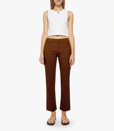 A high-rise bootcut with a zip fly, patch pockets, looser leg and a long 32-inch inseam with a clean hem. Made from semi-rigid cotton, Latte is a l...