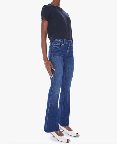 Hit the road. A high-rise flare with a zip fly, long 32-inch inseam and a frayed hem. Cut from stretch denim, Let's Split is a mid-blue with whiske...