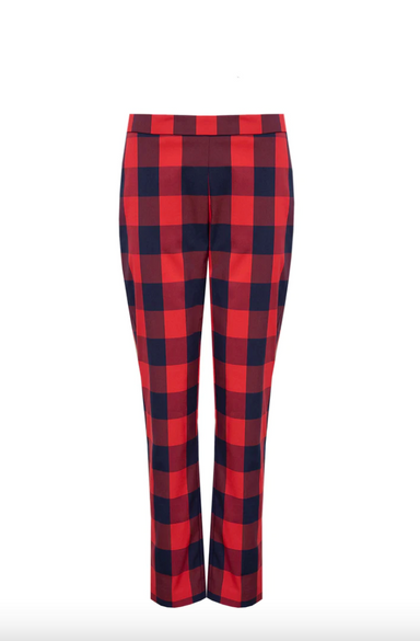 64% Viscose, 36% Rayon Juanita Swirl Indigo Mid-rise pant Elasticated waistband Wide straight leg Band around hem Unlined Size Chart
