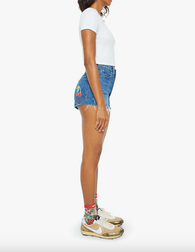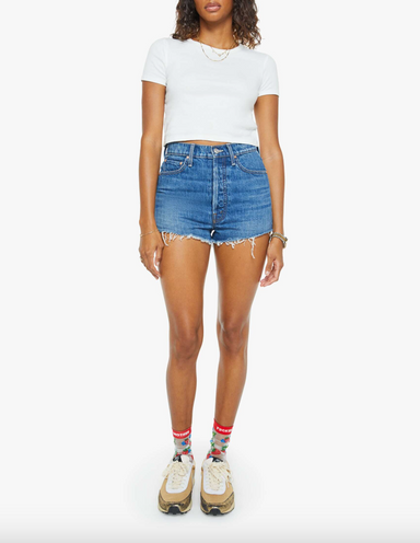 Lightweight flowy denim Button fly Cut off hem Model is 5'9" and wearing a size 25 Size Chart