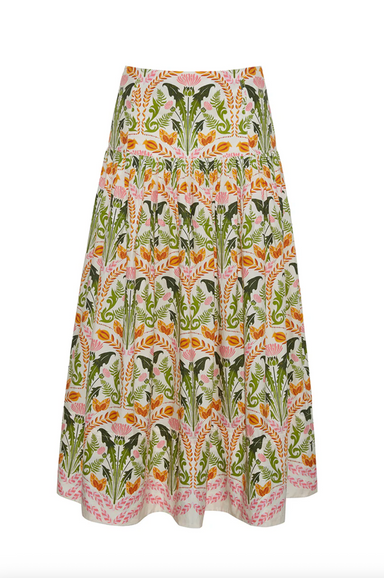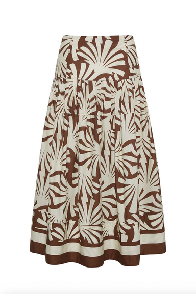 High waisted a-line midi skirt with panelling across front and back Fully lined with center back invisible zipper with hook-and-eye top openin...
