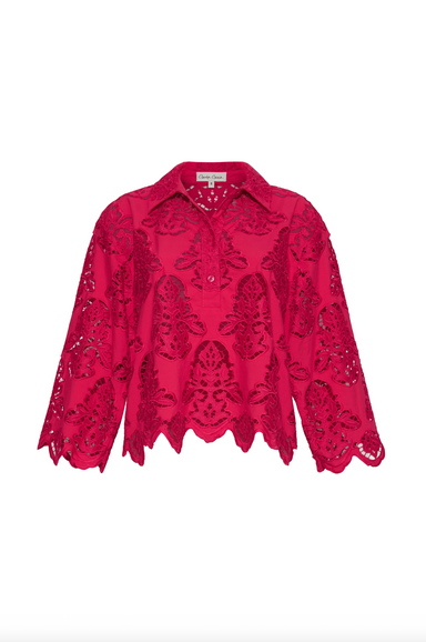 • Half placket at center front• Kimono sleeve hem with scallop edge• Boxy fit• Slightly cropped• Body and sleeve hem feature decorative scallop det...