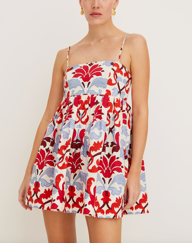 • Mini length babydoll dress designed for a fit-and-flare look• Fitted at bodice with boning at side seams• Nipped in at waist and voluminous skirt...