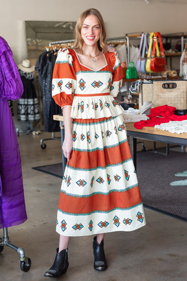 • Full skirt• Fitted waist and yoke• Back Zipper Closure