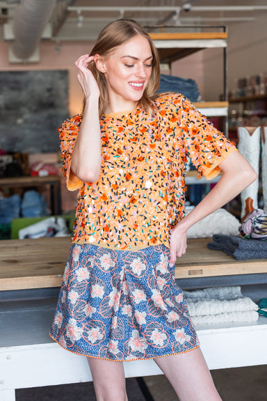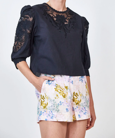 Willa Shorts - Navy Bird Block
