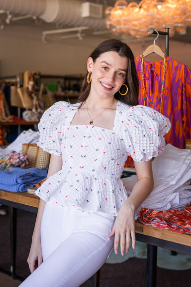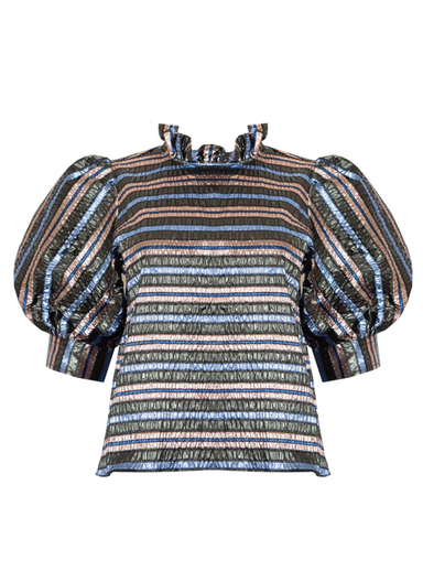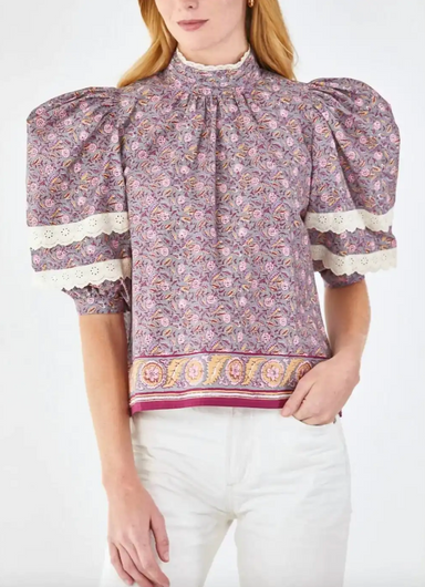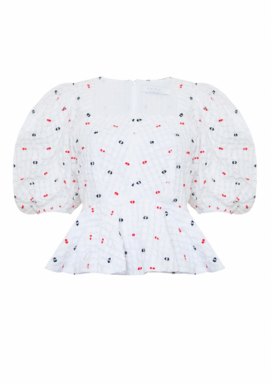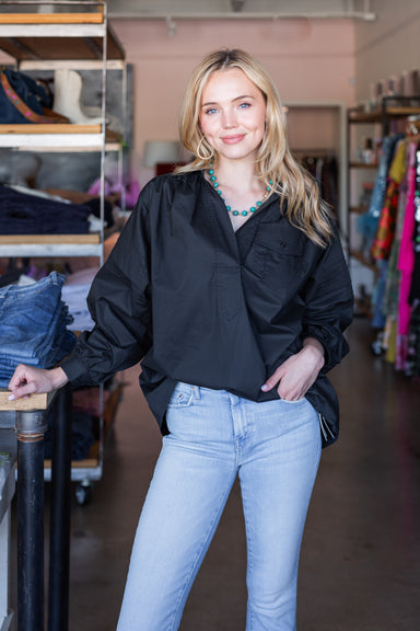 • Crewneck blouse• Back tie closure• Full Balloon Sleeve with cuff