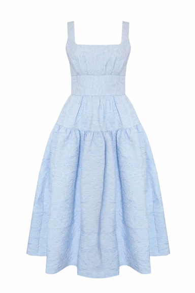 • Sleeveless swing dress• Crewneck line with back zipper closure• Knee length bubble skirt