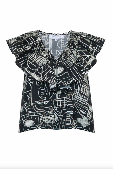 • Fitted V neck sleevelesstop• Ruffle and ruched details throughout