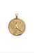 Coin pendant made of sterling silver dipped in 14k gold, measuring 0.975" in diameter.