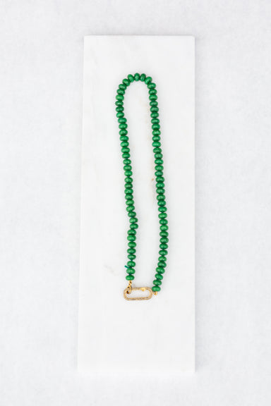 100 year old Czech cherry tomato beads featuring pave diamond horsebit clasp Measures approx. 20" long Pendant not included