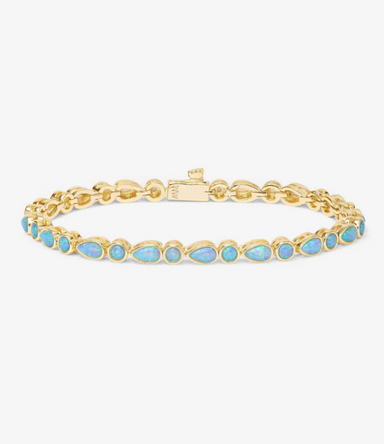 Tennis Bracelet Available in size: 6.5" or 7.5" Push Box Clasp 18k Gold Plated Over Brass Stone: Simulated Opals