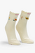 From cab to cabin. Tube socks with a message from MOTHER. Shown here in white with colorful embroidery throughout.