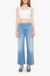Full throttle. Super high-waisted jeans with a loose fit, wide leg, zip fly, patch pockets and a 28.25-inch inseam with a clean hem. Made from a blend of recycled stretch denim, Ride Hard Live Louder is a light blue with subtle whiskering and fading at the knees.