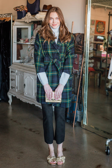Balmacaan Coat - Brown/Sky Glem Plaid Tweed