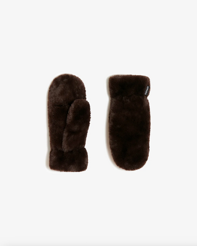 One size only. Circumference: 24.5 inches. Recycled sable faux fur with a bonded faux suede lining. 85% recycled polyester, 15% polyester.