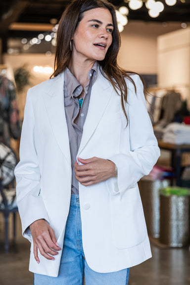 Relaxed with a strong shoulder, this top-selling silhouette is inspired by a men’s sports jacket. Roll your sleeves for a casual look. This garment...