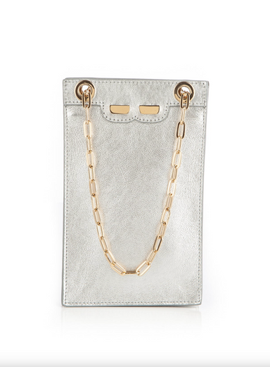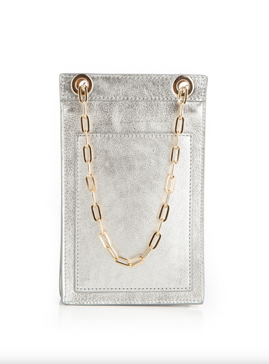 Adjustable chain and leather shoulder strap measuring 105 cm. Wide leg shoulder belt. Flap with snap button closure. One small pocket under the fl...