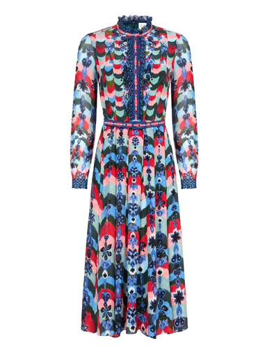 Long Sleeve Print Midi Dress - Jade-Yellow