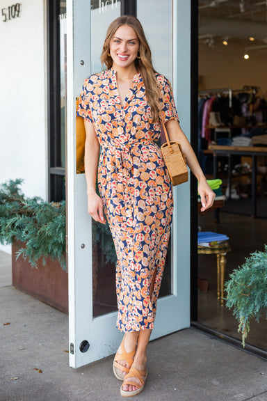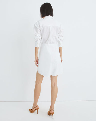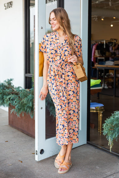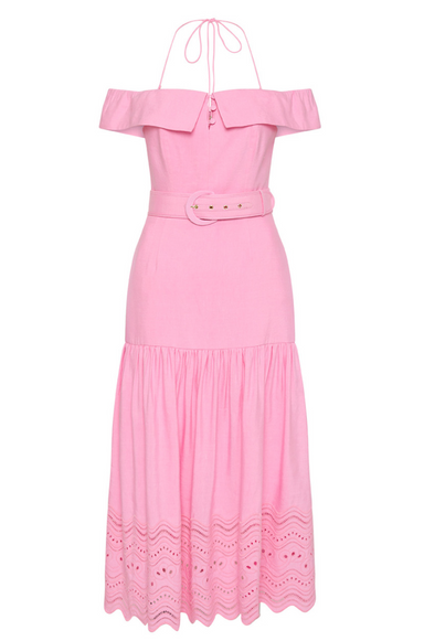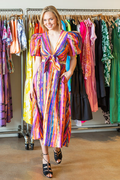 Textured cotton midi dress Mandarin collar Centre front placket with gold knot buttons Bow detail on sleeves Fitted waist Fabric-covered belt Gath...