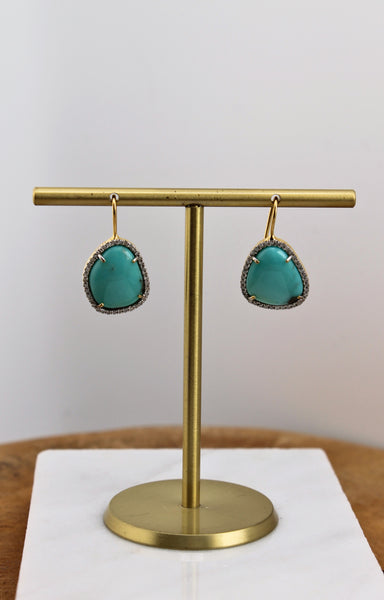The Woods Fine Jewelry Turquoise stone with pave diamond border Measures approx. 1" long and 0.5" across