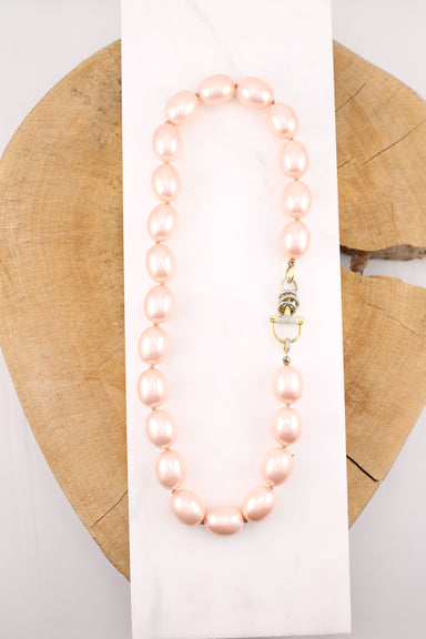 Pink mother of pearl necklace featuring pave diamond clasp Measures approx. 18.5" long Pendant not included