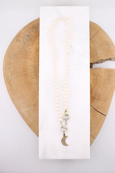 Freshwater pearl necklace featuring pave diamond horse bit pendant Measures approx. 19" long Pendant not included