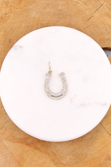 Pave diamond horseshoe pendant Measures approx. 1"x1.25" Necklace not included