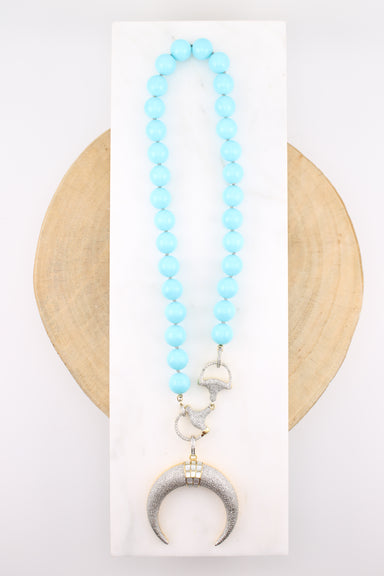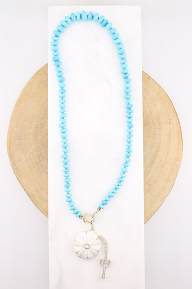 Mother of Pearl beads featuring pave diamond horse bit clasp Measures 18" long Pendant not included