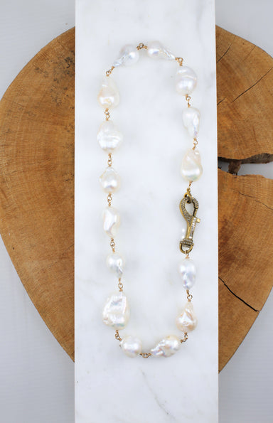 The Woods Fine Jewelry Baroque pearls with pave diamond clasp Measures approx. 20" long