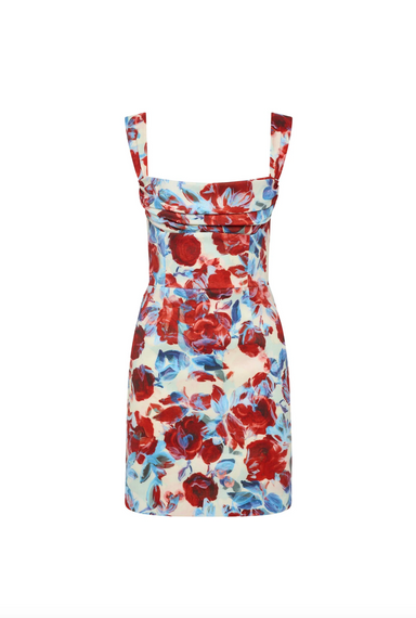 • Sleeveless mini dress• Fitted bustier bodice• Bustled full skirt• Crew neckline with back zipper closure