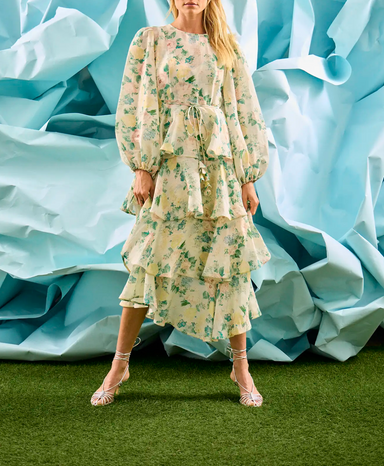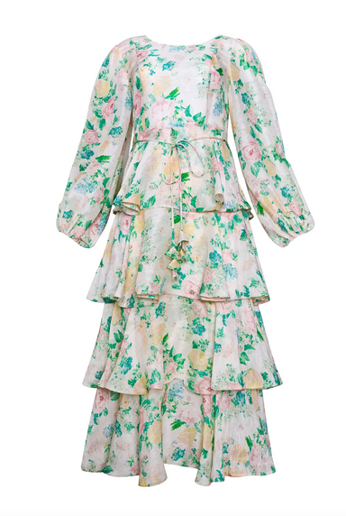 • Midi dress with fitted bodice• Crew neck line with back zipper closure• Long full sleeves with elastic cuff• Tiered skirt• Separate knit slip Fit...