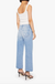 Mid-rise jeans with a loose fit, wide leg and ankle-length inseam with a clean hem. Made from stretch denim, Magic School Bus is a light blue with subtle whiskering and fading throughout. Buckle up.