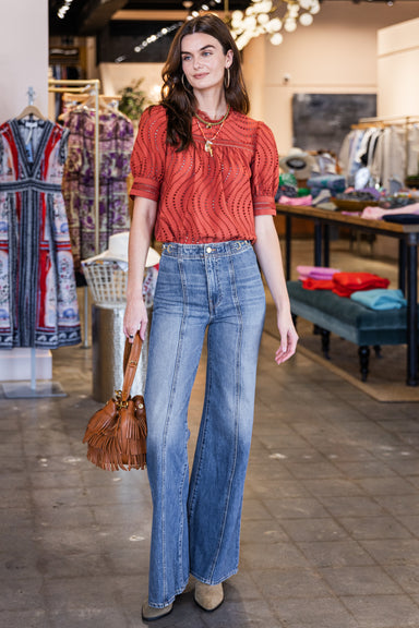 Wide-Leg Jean in Italian Dream Denim evokes the easy, carefree nature of our favorite Irish city. A cropped, hand-distressed raw hem, wide leg fit...