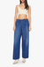 Straight-leg jeans from SNACKS!, a collection of unconstrained silhouettes leaning into exaggerated shapes and extreme proportions. Experimental and non-era specific. For everyone, or not. These super high-waisted jeans have a loose straight leg, elastic drawstring waistband, zip fly and a 30-inch inseam with a clean hem. Made from a rigid recycled cotton blend, Secret Sauce is a dark blue with a pretzel-detailed button and candy-inspired interior rivets. Would you like a treat?