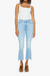 Rise and shine. This iconic high-waisted bootcut hits at the ankle with a frayed step-hem. Made from stretch denim, Beaming is a light blue with whiskering and fading at the knees.