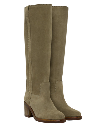 Draped suede boots Soft turn-down uppers Pointed toes Laminated leather cone heels Soft leather insoles and outsoles Soft leather lining Heel...