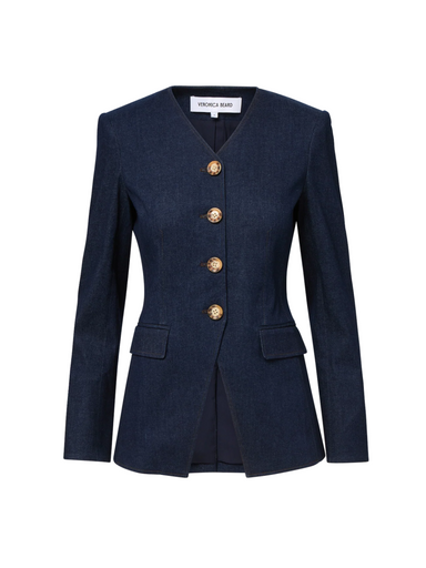 A refined take on the denim jacket. Expertly crafted from a premium stretch-denim blend, Cynthia is a single-breasted blazer featuring a darted bod...